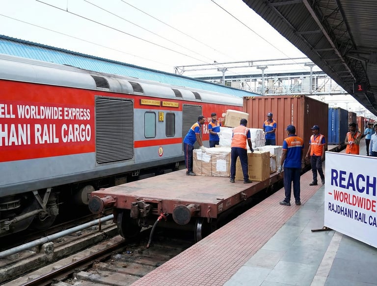 Rajdhani Rail Cargo" refers to freight services that utilize the Rajdhani Express network, which are offered by various logistics and parcel service companies across India